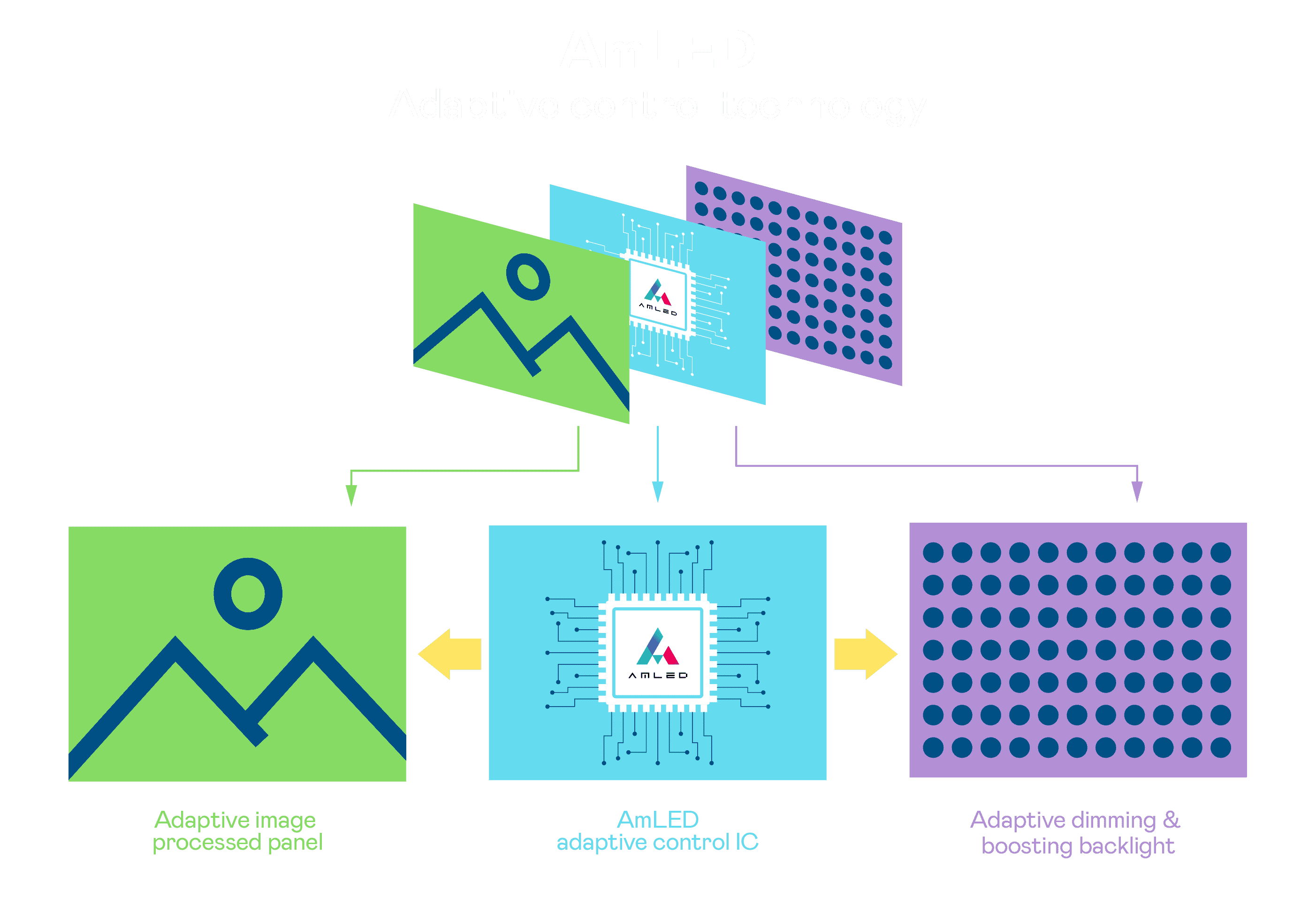 AmLED 具备更省电与低蓝光特性。。与一般的 LED 背光显示技术相比,,,由于 AmLED 常时处于局部调光状态,,其功耗仅有前者的 50% 左右,,,同时 AmLED 还具备低蓝光特性,,,满足长时间使用的护眼需求。。。