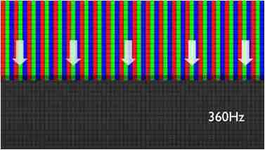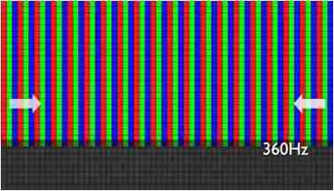 传统液晶驱动是从左到右单向进行,,,在画面更新速度愈来越愈快的情况下,,,位于驱动线路末端的右下角区域,,,,画素的闸极来不及在短时间内获得足够电压,,无法显示出正确的颜色资讯。。