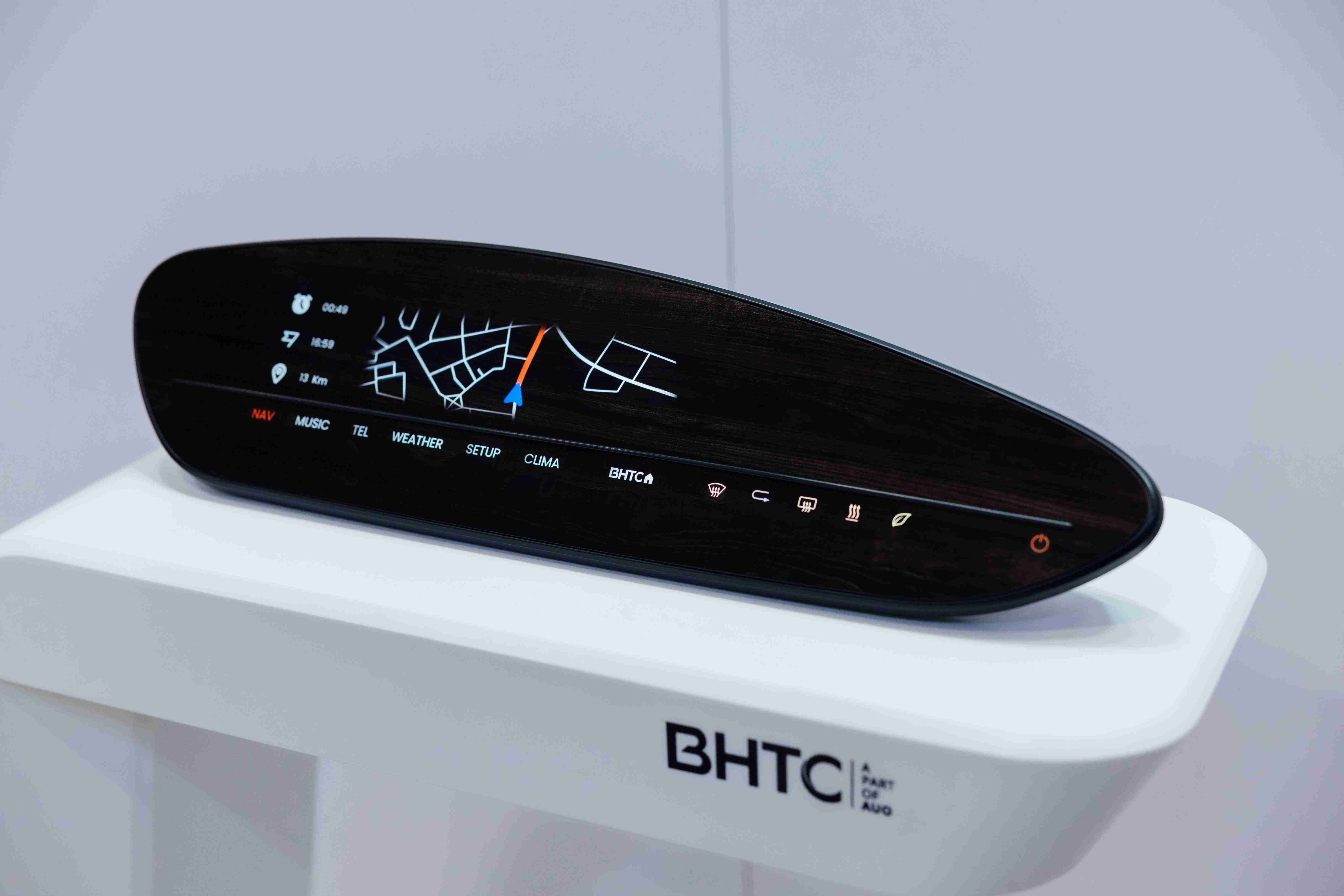 BHTC的木纹车用显示器(Display Behind Wood)将无缝木质表面与显示器结合后,,可以融入车内设计中,,,,提供驾驶优质的视觉效果,,加上其无边框的设计和亮度调控,,,,创造更优质的车内体验。。