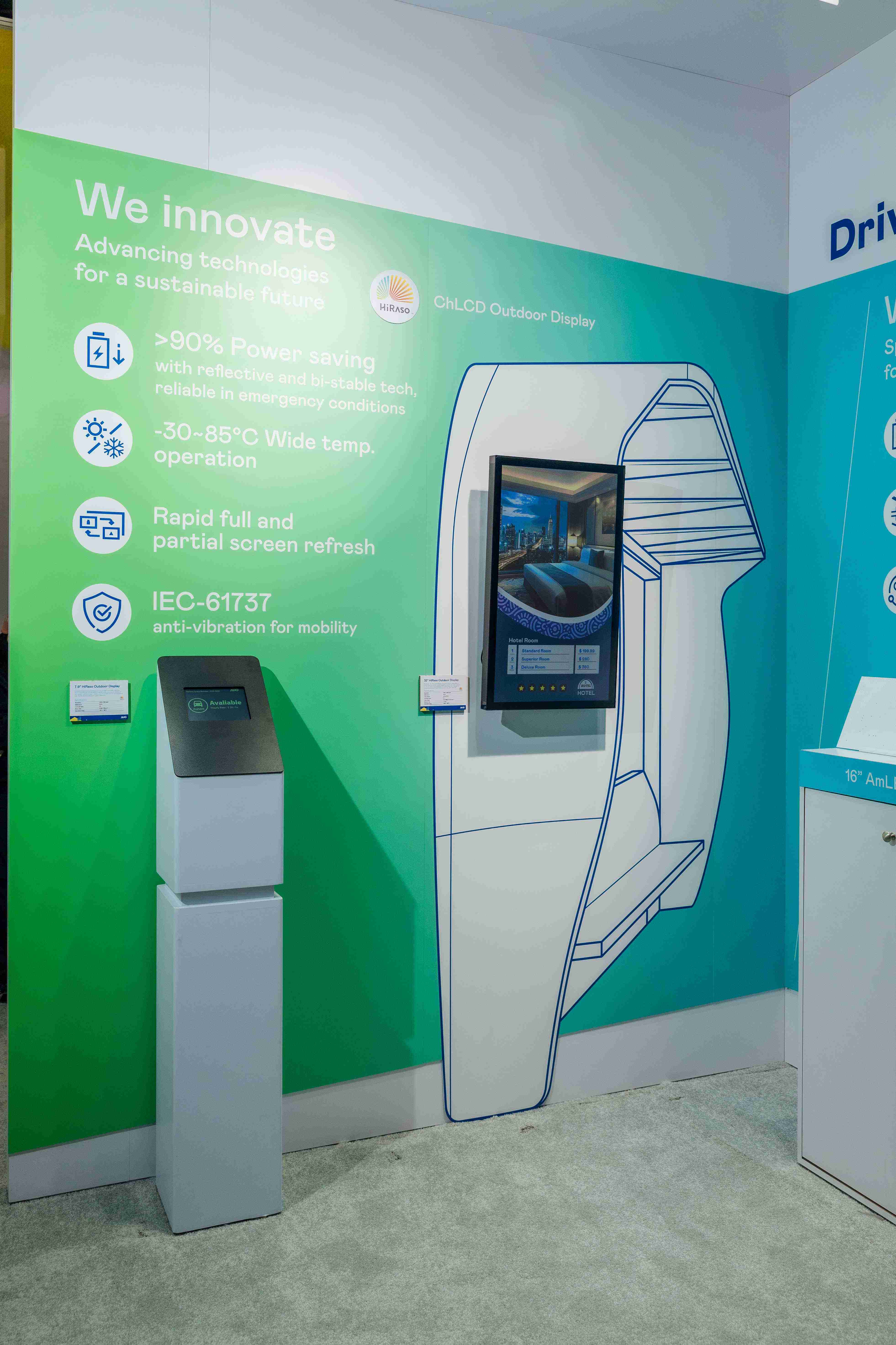 HiRaso胆固醇液晶显示器运用反射环境光线的方式,,,,呈现影像显示时零耗能的环保省电诉求,,,光线愈强愈能呈现绝佳的色彩饱和度及显示效果,,,同时在摄氏-30度至85度间宽温的使用优势,,为户外电子看板的新首选。。。