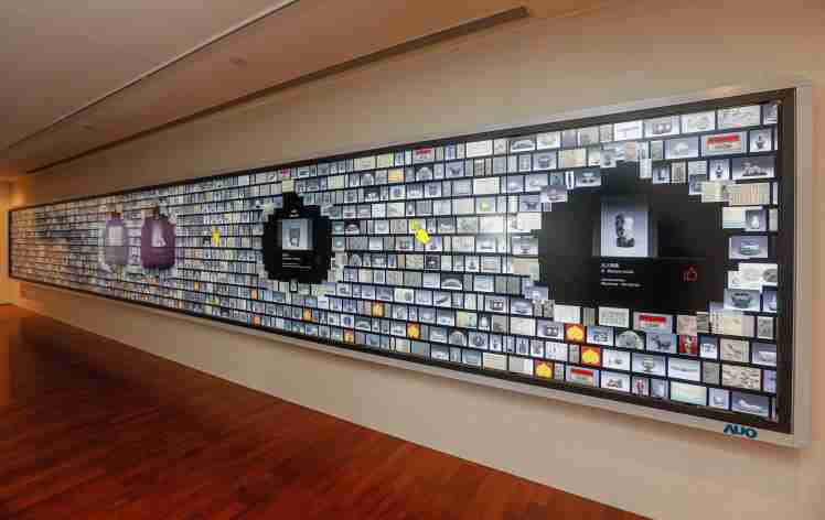 因应全球智能化文创展演新趋势,,创利空间本次连手国际动画界首屈一指的太极影音,,,,整合故宫数字典藏资源,,,于导览大厅打造结合科技与人文的智能博物馆互动展示空间。。其中包括长达 12 公尺亚洲最大的 文物互动导览墙(*),,采用 20 片壹号平台 55寸高规格拼接墙显示器组成,,具有高解析、、低反射、、极窄边框的抢眼设计,,,拼接后的边框宽度仅 1.8mm,,,,以近乎无接缝设计让参观者聚焦整体影像内容,,享受沉浸式观赏体验。。。互动导览墙的设计灵感源自故宫多宝格文物,,具有直觉友善的使用接口与红外线感应设计,,,可让多人同时透过点选、、、拖拉、、、滑动等互动手势,,,轻松饱览 300 多件故宫文物精彩的图像、、影片、、动画、、、、360 度环物模型及书法释文,,整合在线线下体验,,吸引观众接续前往展间探索实体文物。。。。位于导览大厅两侧的 展讯轮播墙"则分别由 4 片 55寸拼接墙显示器所组成,,透过屏幕轮播故宫当期展览与重要活动讯息,,,,让参观者得以先睹为快。。。